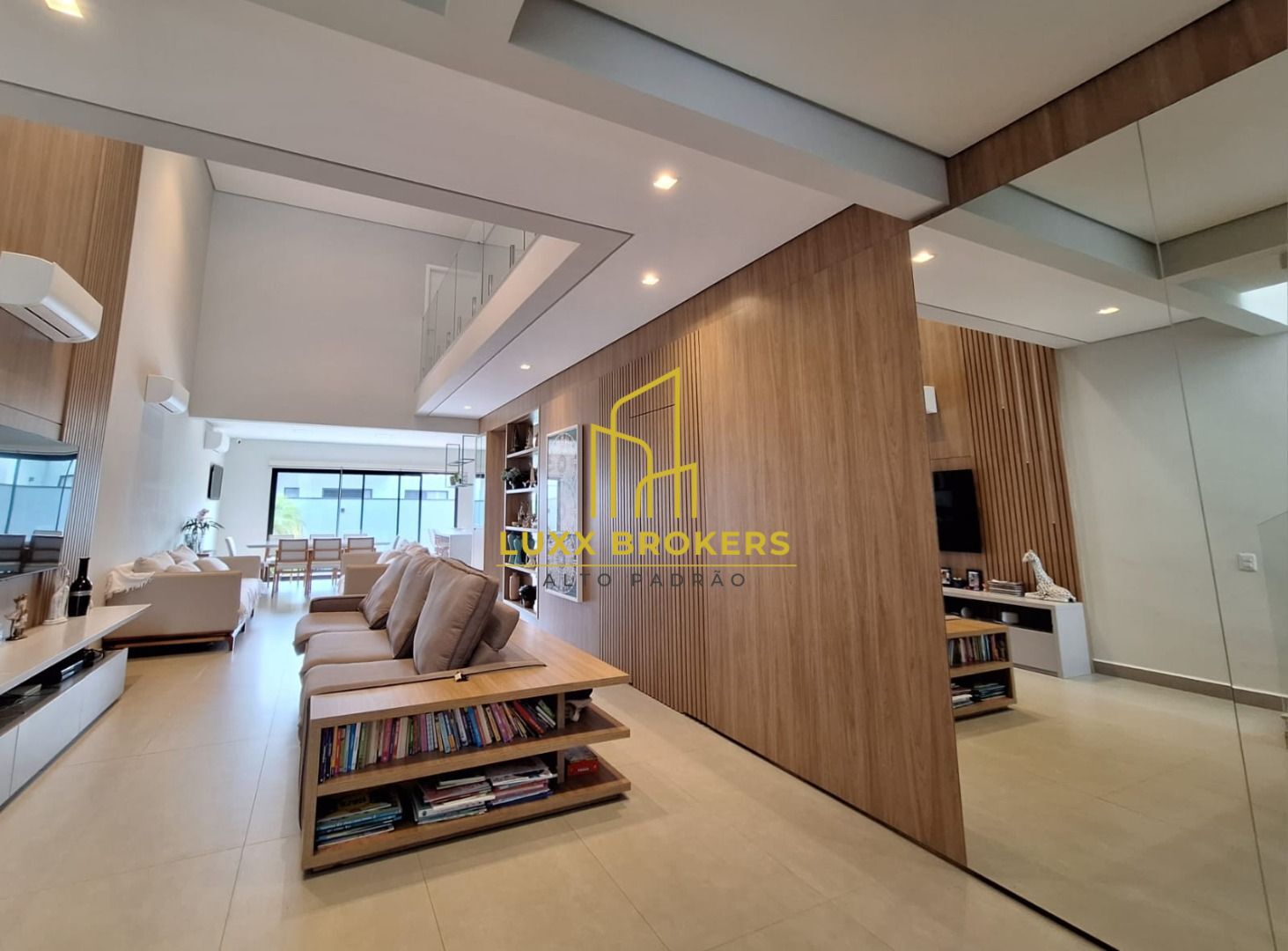 Piso inferior com ampla sala de estar, jantar e TV com pé direito duplo integrada com área gourmet, lindo painel para TV, cristaleira embutida, lavabo com porta invisível, cozinha planejada independente com armários e fogão, lavanderia, despensa e sala para despejo, quintal maravilhoso com piscina, jardim, banheiro externo.