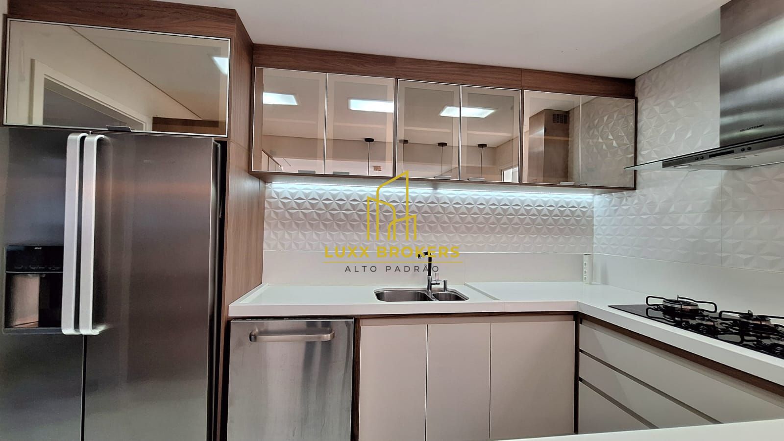 Piso superior com 3 suítes, todas projetadas , com decoração e armários planejados de primeira linha, uma sala de TV que pode ser facilmente transformada em dormitório ou escritório, todas com iluminação embutida proporcionando vários ambientes com conforto e sofisticação, ar condicionado.