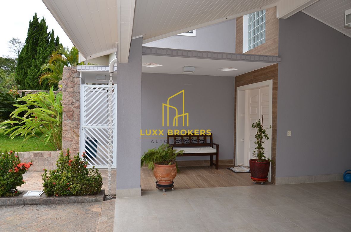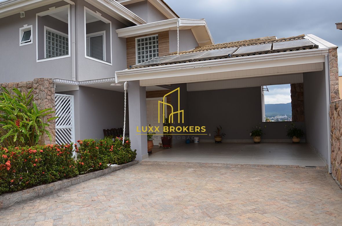 Linda casa em condomínio fechado com 3 quartos, uma suíte master com closet, hidromassagem e sacada, 2 quartos com banheiro social, um dos quartos com sacada e vista para a represa, serra, e aeroporto, sala íntima entre os quartos, sala de jantar, sala de estar e TV, escritório com sacada em "L" com vista para a piscina (pode ser revertido em dormitório), lavabo, cozinha planejada, despensa com armários, lavanderia planejada, área de lazer com sala, espaço gourmet com cozinha planejada , depósito e banheiro auxiliar integrada com a piscina e quintal, sauna (falta instalar aparelho), solarium, depósito, pergolado coberto, fogo de chão (lareira externa) com bancos em porcelanato, cozinha gourmet com churrasqueira americana, paisagismo e árvores frutíferas, casa possui aquecimento solar da agua com apoio elétrico nos banheiros,cozinha e a piscina é aquecida com sistema solar individual, acabamentos de primeira linha, escadas e cozinha em granito, papel de parede importado nas suítes, lavabo, escritório, sala de jantar e sala de lazer, piso vinílico Beaulieu nos quartos, sala íntima e escritório, toda área externa, garagem, fachada, jardineiras com projeto e acabamentos da Portobello Shop, textura gran fino nas parades da casa e muros.
