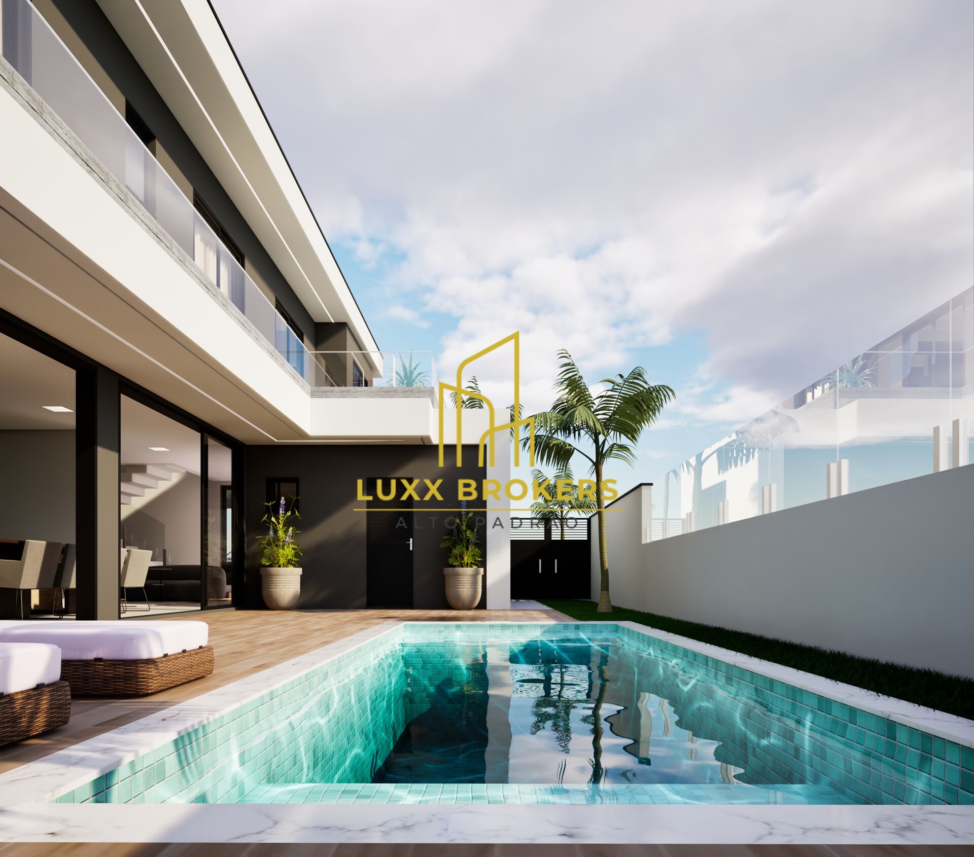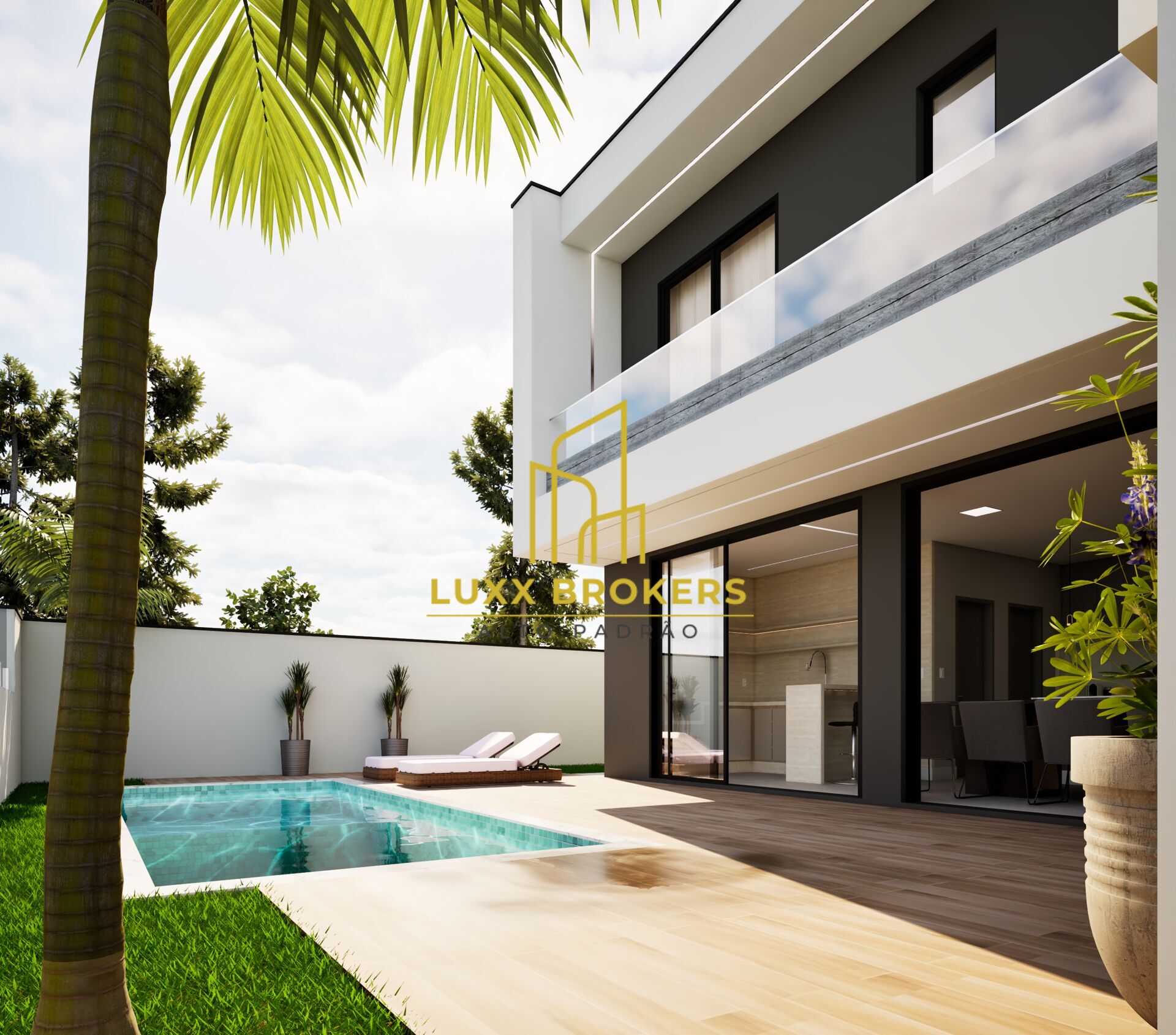 Piso inferior conta com mais uma suíte multifuncional/escritório , ideal para home office ou quarto de hospedes, sala de estar e TV ampla, perfeita para momentos de relaxamento, lavabo interno e banheiro externo garantindo praticidade para os moradores e convidados, cozinha moderna integrada coma área gourmet com churrasqueira, piscina privada, perfeita para lazer e entretenimento, despenda e lavanderia garantindo organização e funcionalidade, espaço pet projetado para o bem estar dos seus animais de estimação. garagem para 4 veículos, 2 cobertas e 2 descobertas.