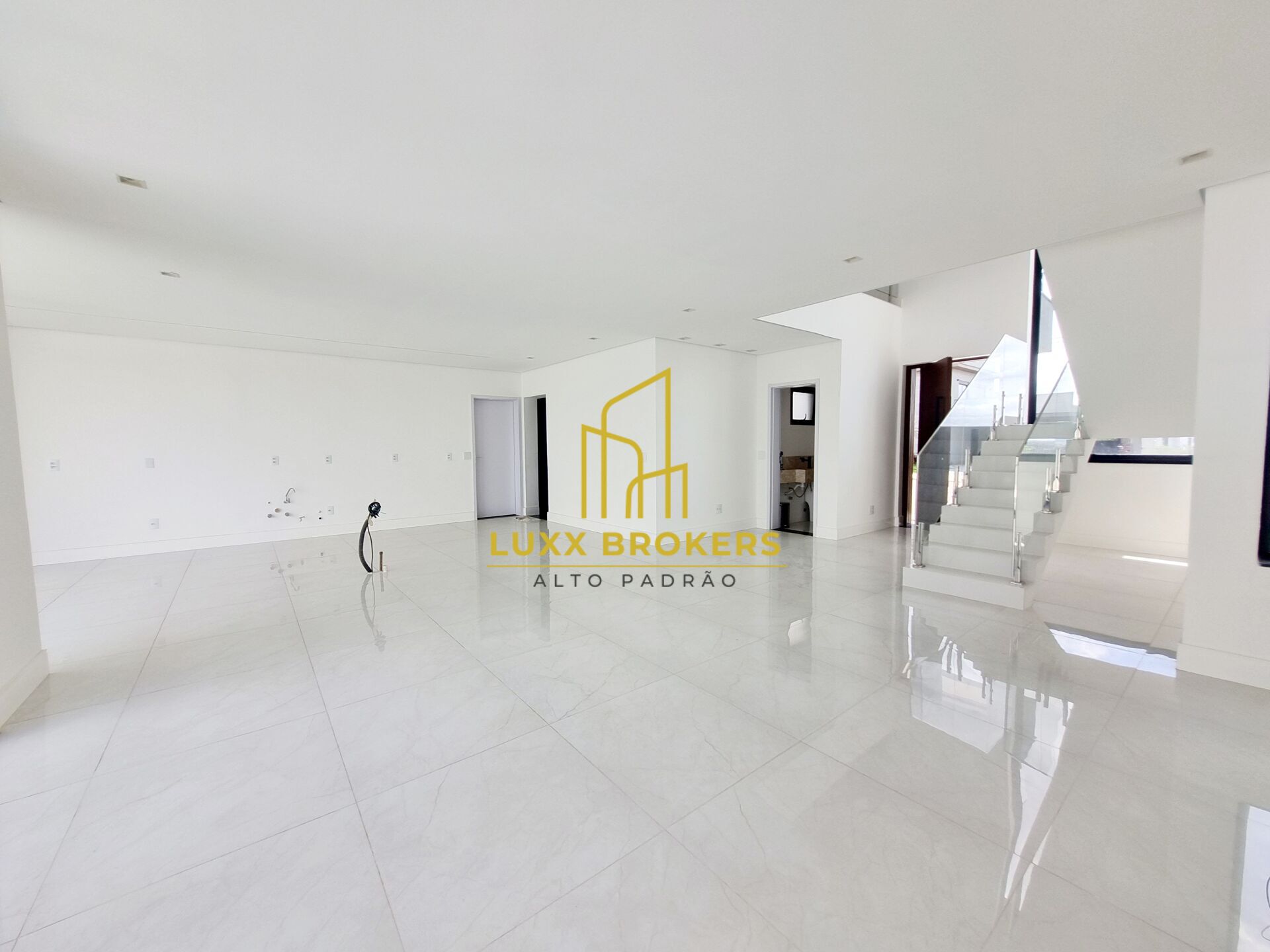 Piso inferior: Ampla sala para dois ambientes, cozinha com espaço para ilha, área gourmet, lavabo, área de serviço com pequeno quintal, piscina, amplo corredor lateral, garagem para quatros veículos.